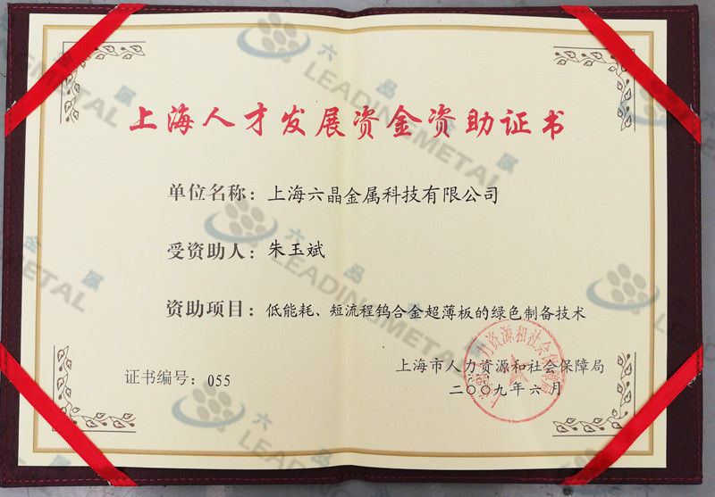 Funding certificate of Shanghai talent development of fund