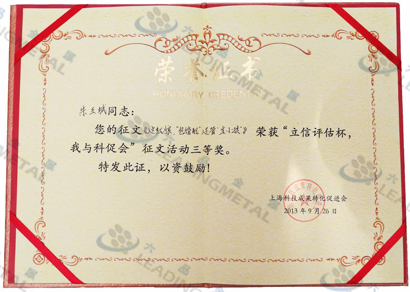 “立信评估杯,我与科促会” The third prize of Soliciting articles